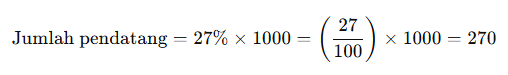 Sebagai contoh, sebuah kota memiliki 1000 penduduk, dan setelah dilakukan survei, diketahui bahwa 27% dari penduduk kota tersebut adalah pendatang. Untuk menghitung jumlah pendatang, kita cukup menggunakan rumus berikut: