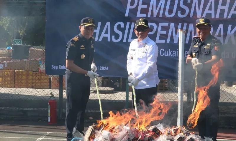 Kantor Bea dan Cukai Mataram menindak terkait 7,17 juta batang rokok dan 118.213 tembakau iris tanpa cukai. Potensi kerugian negara barang kena cukai hasil tembakau senilai Rp5,56 miliar.