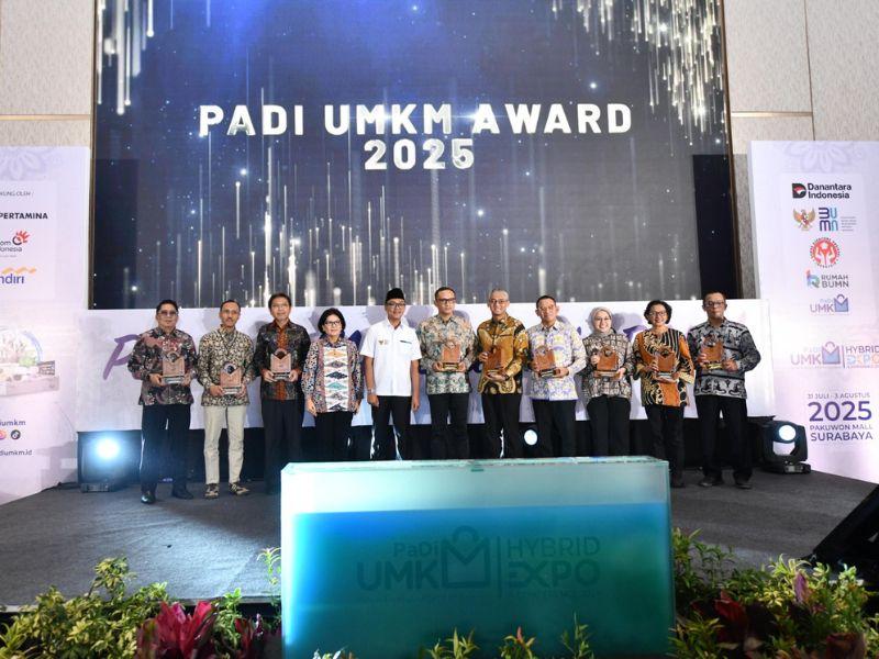 Penghargaan diberikan oleh Wakil Menteri BUMN Aminuddin Ma'ruf di sela acara PaDi UMKM Hybrid Expo & Conference 2025 di Pakuwon Mall, Surabaya, Jumat, 1 Agustus 2025.