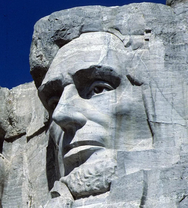 Sebagai presiden ke-16 AS (1809–1865), Abraham Lincoln memimpin negara dalam Perang Saudara Amerika, periode paling krusial dalam sejarah AS. Ia berkomitmen menjaga persatuan bangsa dan berjuang menghapus perbudakan. Borglum memilih Lincoln sebagai simbol ketahanan dan persatuan negara.