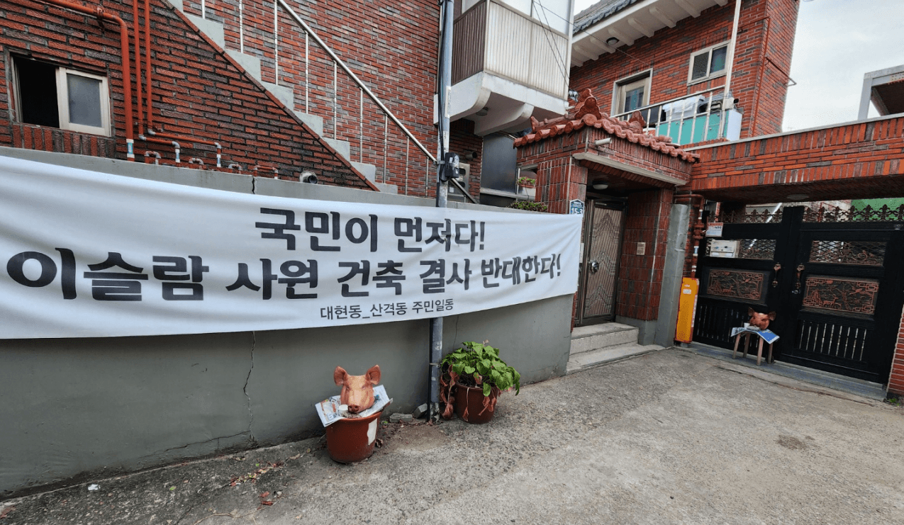 Ketika tetangga Korea mengetahui rencana tersebut, mereka dengan keras menentangnya. Mereka merasa mengalami kebisingan dan ketidaknyamanan dari doa-doa umat Muslim. Selain itu, mereka mengklaim orang muslim akan mengambil alih seluruh lingkungan.
