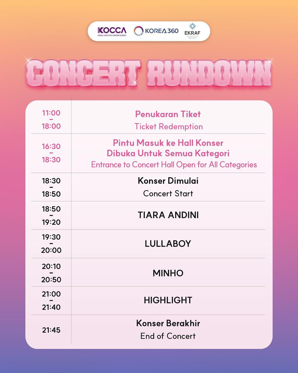 Informasi mengenai susunan acara atau rundown konser tersebut dibagikan melalui akun Instagram resmi KOREA 360 pada Kamis (15/1/2026).