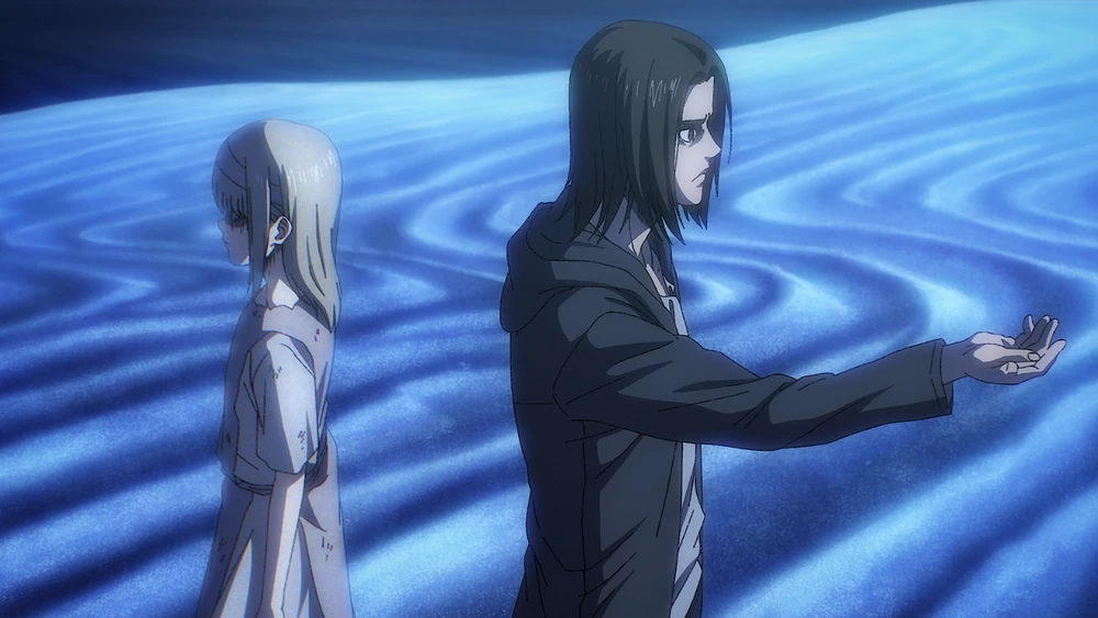 Eren mendesak Ymir untuk berhenti tunduk pada keinginan orang lain dan mengambil kendali atas hidupnya. Eren bahkan menawarkan dirinya untuk menjadi katalis yang akan mengubah dunia, menghapus semua musuh yang mengancam kebebasan bangsa Eldia. Namun, meskipun Eren berusaha membebaskan Ymir, dia tetap berada dalam pengaruh trauma masa lalunya dan terus terjebak dalam Paths—sampai keputusan akhir Mikasa mengubah segalanya.