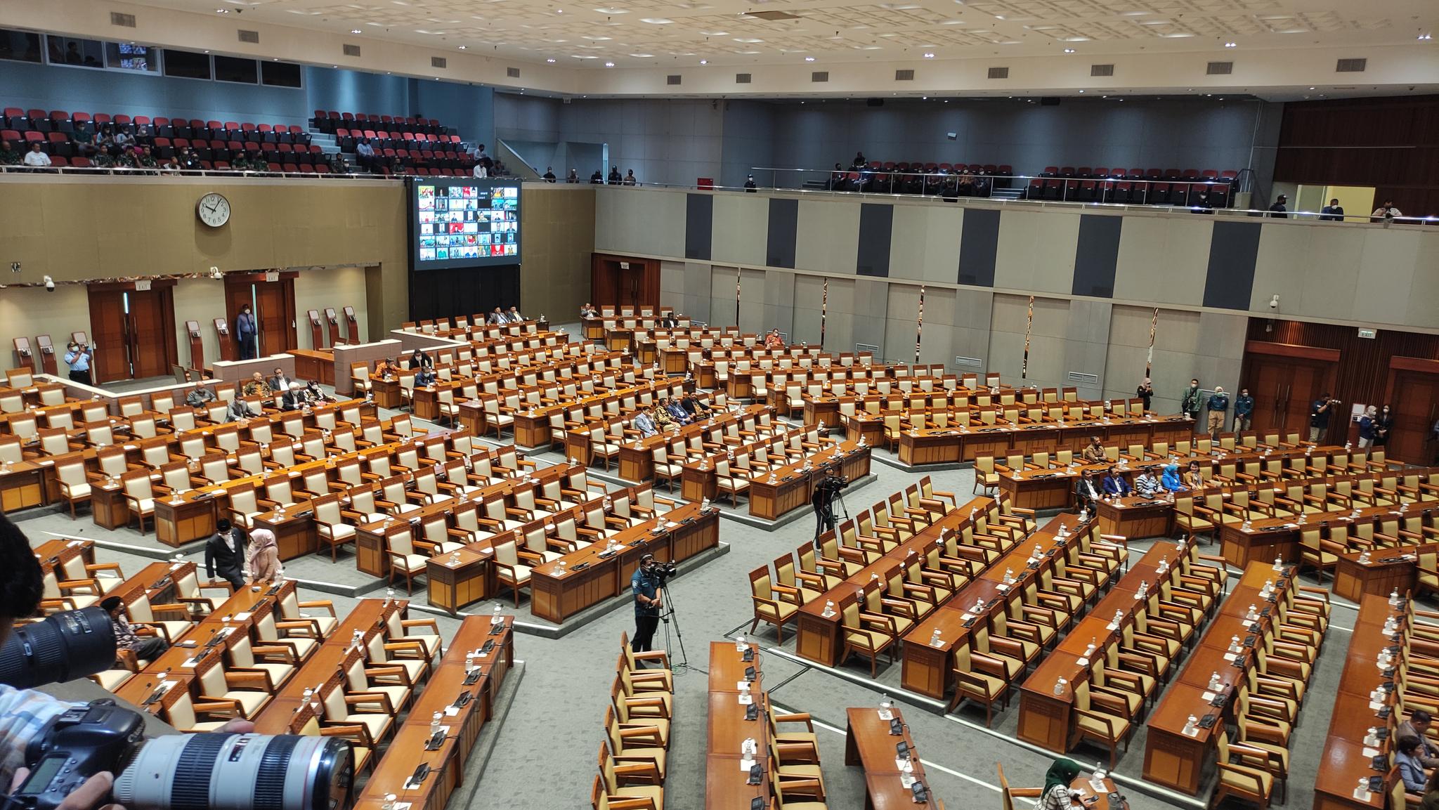 Rapat paripurna dipimpin oleh Wakil Ketua DPR, Dasco Sufmi dan pimpinan lain seperti Rachmat Gobel dan Lodewijk F Paulus.