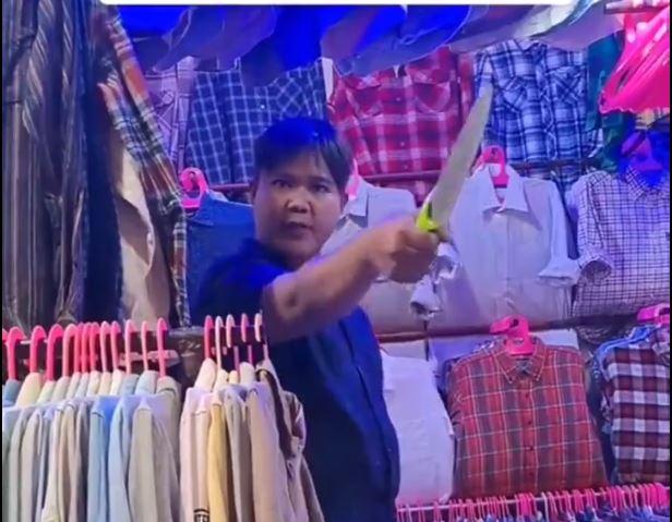 Sebelumnya, beredar video yang menunjukkan aksi pedagang baju mengancam pembeli seorang wanita menggunakan pisau.