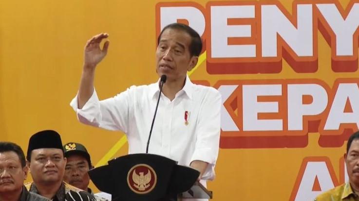 Jokowi mengatakan, perubahan iklim yang dulu hanya menjadi topik pembicaraan, saat ini sudah berada di depan mata. Bencana kekeringan panjang maupun hujan terus-menerus terjadi di mana-mana dan menyebabkan produktivitas padi menurun.