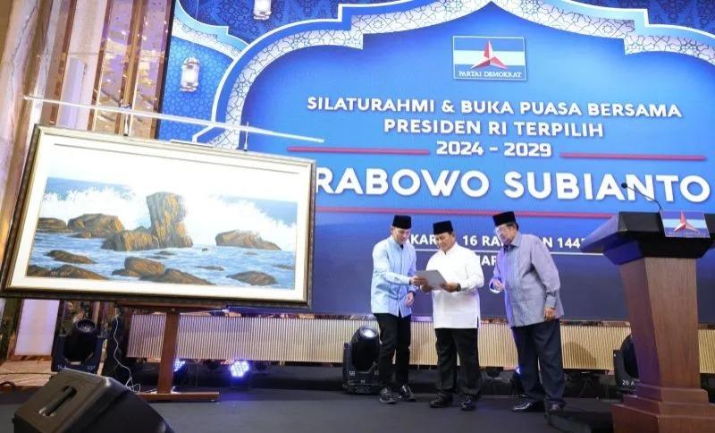 Dalam kesempatan yang sama, SBY memberikan lukisan berjudul “Standing Firm Like Rocks” yang dimaknai sebagai keyakinan SBY dan Partai Demokrat atas kepemimpinan Prabowo mendatang. SBY mengaku membuat lukisan itu selama 10 jam khusus untuk Prabowo.