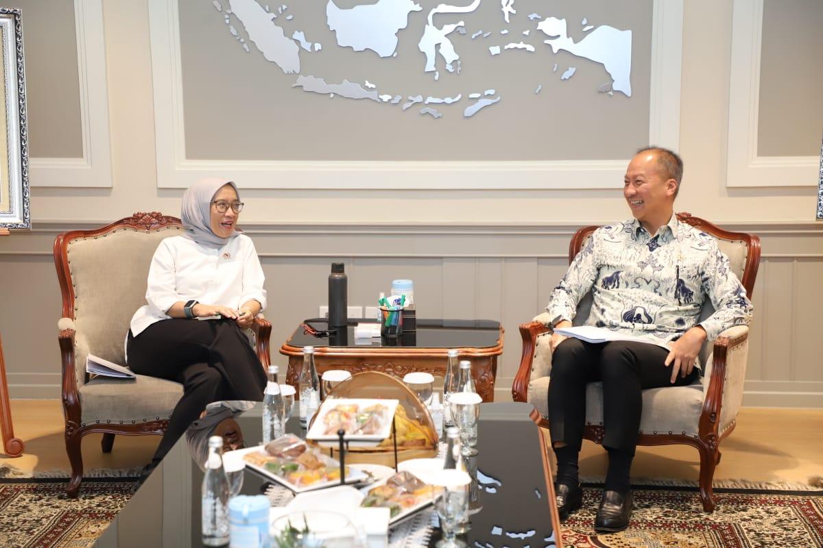 Pantau - Menteri Pendayagunaan Aparataur Negara dan Reformasi Birokrasi (PANRB) Rini Widyantini bertemu dengan Menteri Perindustrian Agus Gumiwang Kartasasmita di Kantor Kementerian PANRB, Jakarta, Senin (23/12).