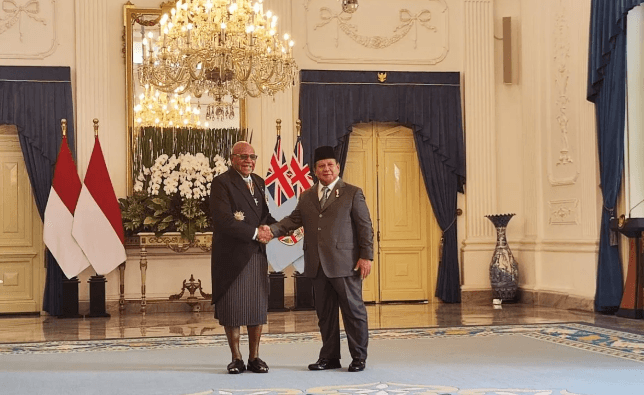 Pantau - Presiden Republik Indonesia Prabowo Subianto menerima kunjungan resmi Perdana Menteri Fiji, Sitiveni Rabuka, di Istana Merdeka, Jakarta, Kamis, 24 April 2025, dalam pertemuan bersejarah yang menandai lebih dari 50 tahun hubungan diplomatik antara Indonesia dan Fiji.