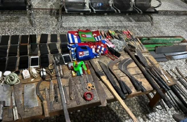 Dalam operasi tersebut, ditemukan puluhan telepon seluler, potongan besi, serta senjata tajam yang diduga disimpan secara ilegal oleh para narapidana.