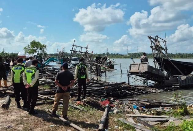 Pantau - Tim gabungan aparat penegak hukum di Provinsi Kepulauan Bangka Belitung menertibkan aktivitas tambang timah ilegal di wilayah Izin Usaha Pertambangan Khusus (IUPK) milik PT Timah Tbk di Pantai Merbuk, Kabupaten Bangka Tengah, Kamis (31/7/2025).