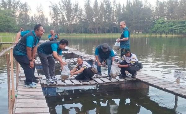 Pantau – Kepala Badan Karantina Indonesia, Sahat M. Panggabean, melepas 15.000 bibit ikan nila di kolong atau bekas tambang bijih timah di Pangkalpinang, Provinsi Kepulauan Bangka Belitung (Babel), Sabtu (9/8/2025).