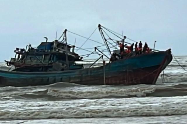 "Semua ABK ditarik menggunakan tambang dari bibir pantai dengan tetap memperhatikan prosedur keselamatan. Inisiatif ini muncul dari warga dan nelayan," lanjut Bayu.