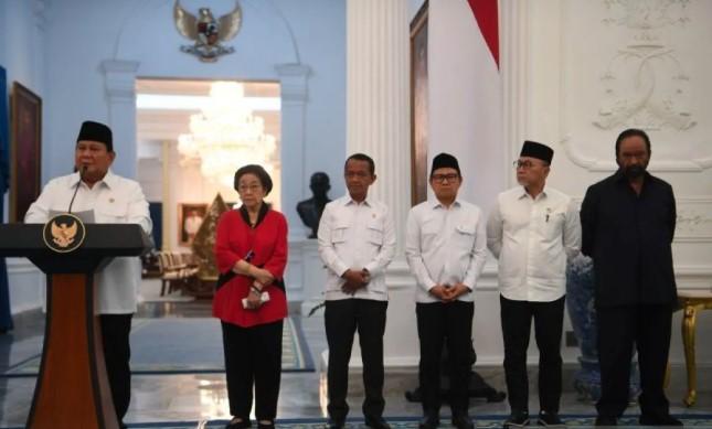 Pernyataan tersebut disampaikan Presiden Prabowo didampingi oleh delapan ketua umum partai politik serta sejumlah pimpinan lembaga tinggi negara.