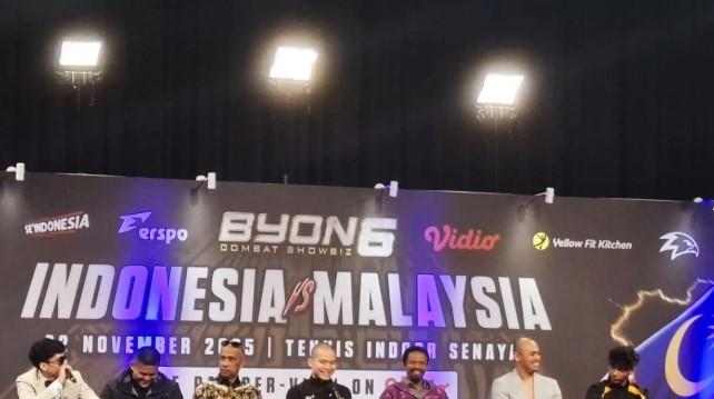 Pantau - Rivalitas sengit antara Indonesia dan Malaysia akan kembali tersaji dalam ajang Byon Combat Showbiz 6 yang digelar di Tennis Indoor Senayan, Jakarta, pada 22 November 2025.