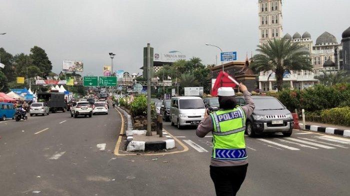 Pantau - Polisi mulai menerapkan sistem satu arah bagi kendaraan dari kawasan Puncak, Bogor menuju Jakarta. Antrean kendaraan tampak sudah terjadi di Puncak.
