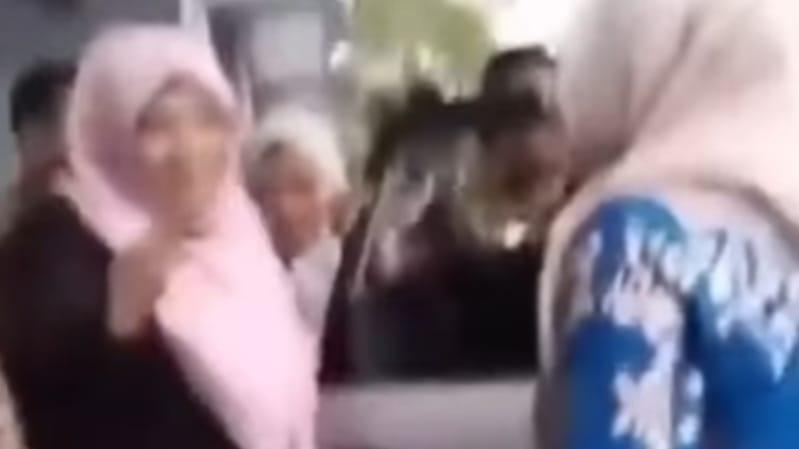 "Kita baik-baik loh, Bu. Kita cuma minta dari Ibu. Kita nggak minta apa-apa," ungkap wanita berbaju biru.