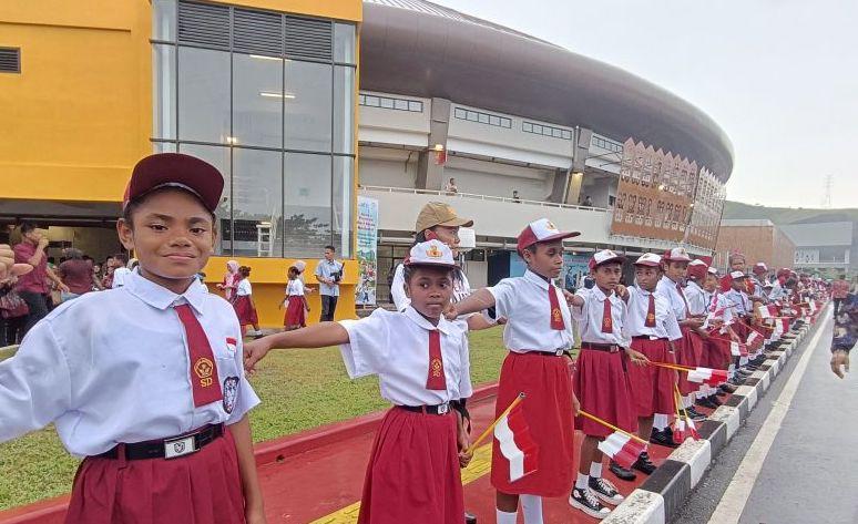 Kepala Bidang SD Dinas Pendidikan dan Kebudayaan Kota Jayapura, Ellen Montolalu, mengatakan seluruh peserta didik akan berbaris sepanjang pintu masuk lokasi kegiatan dengan memegang bendera Merah Putih."Selain siswa SD ada juga SMP dan SMA namun sebagian siswa merupakan peserta tarian kolosal sehingga kami menyiapkan siswa yang tidak terlibat dalam peserta," kata Ellen dilansir Antara.