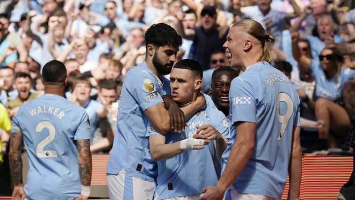 Pantau - Manchester City tak melakukan kesalahan di pekan terakhir Liga Inggris. The Citizens sukses memastikan gelar juara usai membungkam West Ham United 3-1.Manchester City menjamu West Ham di Etihad Stadium, Minggu (19/5/2024) malam WIB, pada pekan terakhir Liga Inggris. Mereka butuh kemenangan untuk menyegel gelar tanpa menunggu hasil Arsenal, yang berjarak dua poin di posisi dua.