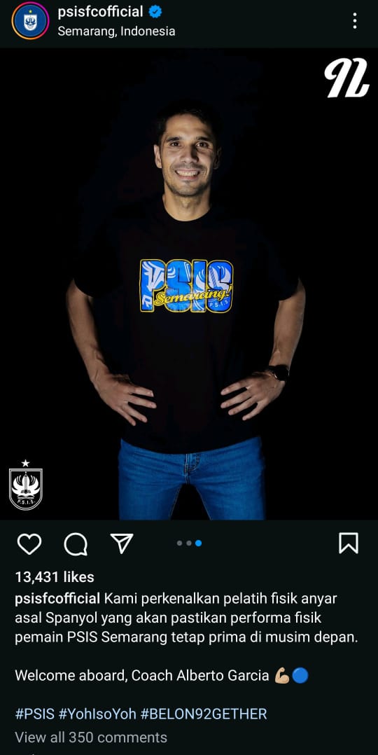 "Hari ini kami umumkan bahwa PSIS mendatangkan pelatih fisik asal Spanyol, coach Alberto Garcia. Coach Alberto ini telah banyak pengalaman dan bidang keilmuannya di dunia sport science sangat menguasai," ungkap Yoyok.