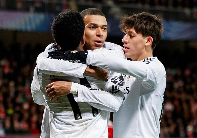 Real Madrid melenggang ke babak play-off dengan modal kemenangan 3-0 atas Brest Prancis. Tambahan tiga angka membuat El Real harus puas di posisi 11 klasemen akhir dari 36 tim peserta. Posisi di luar delapan besar, yang berhak lolos langsung ke babak 16 besar atau fase grup.