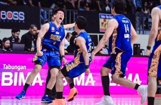 Satria Muda tampil lebih efektif dengan mencetak 23 tembakan dari 58 percobaan, termasuk sembilan three point yang sukses dieksekusi.