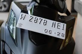 Setelah itu, pasang pelat nomor dan tekan hingga menempel kuat. Biarkan lem mengering untuk memastikan daya rekatnya maksimal.