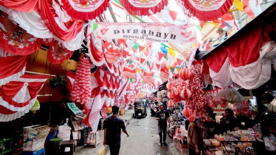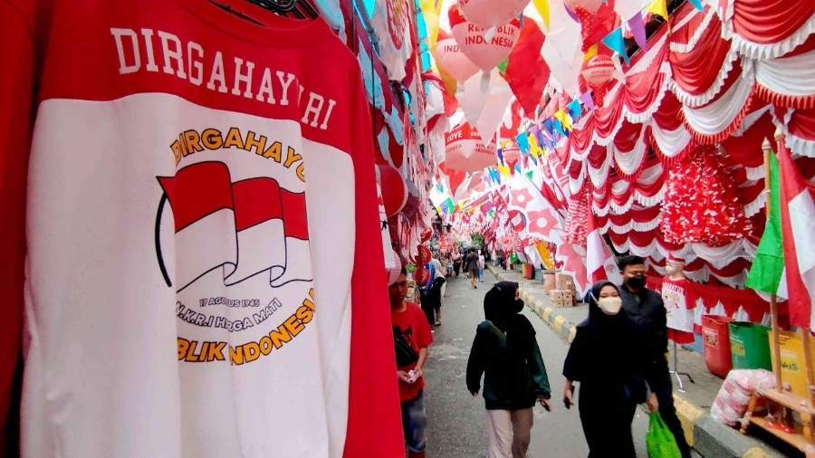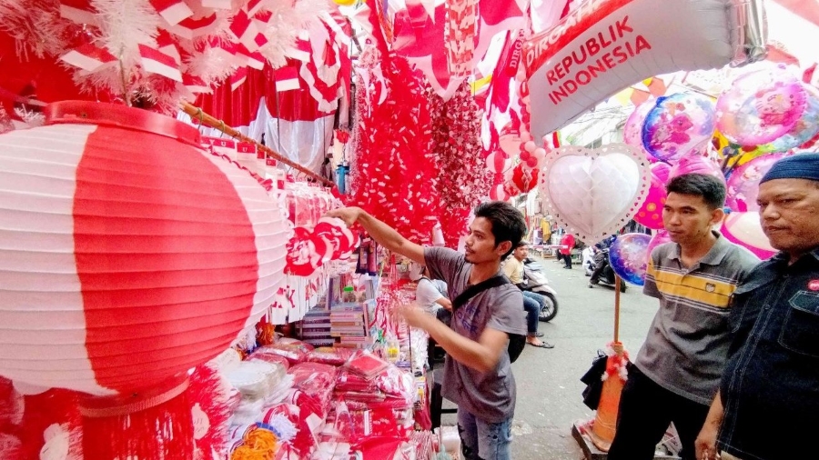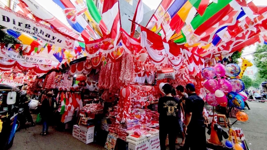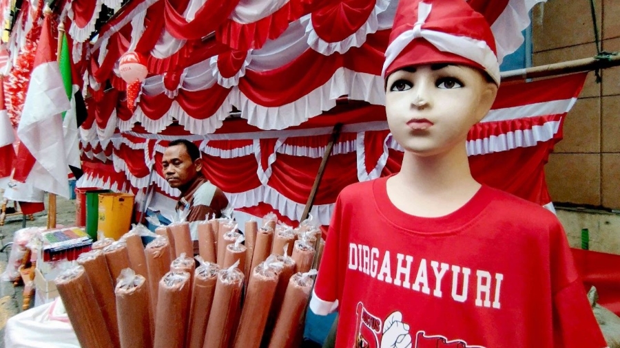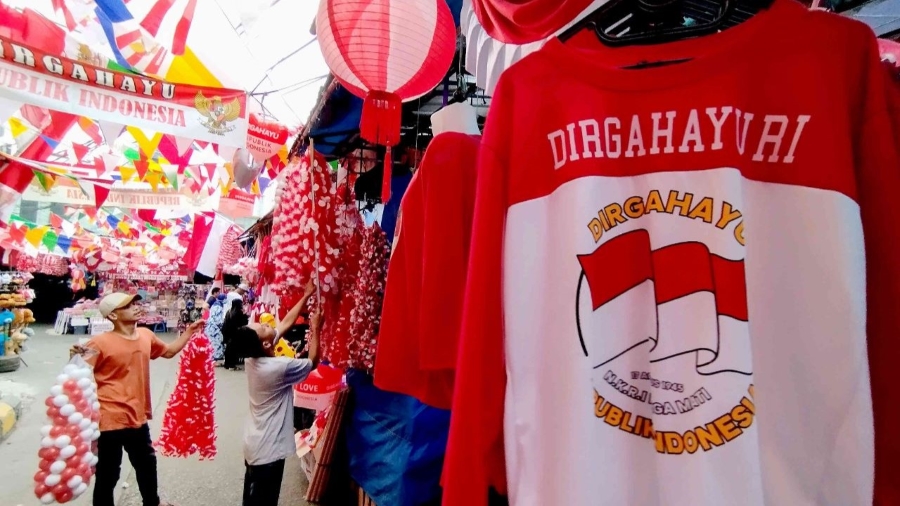 Jelang HUT ke-78 RI, pedagang bendera musiman mulai meramaikan sekitaran pasar dan jalan-jalan dengan menawarkan pernak-pernik perlengkapan untuk menyemarakkan peringatan HUT RI dan perayaan tujuh belasan.