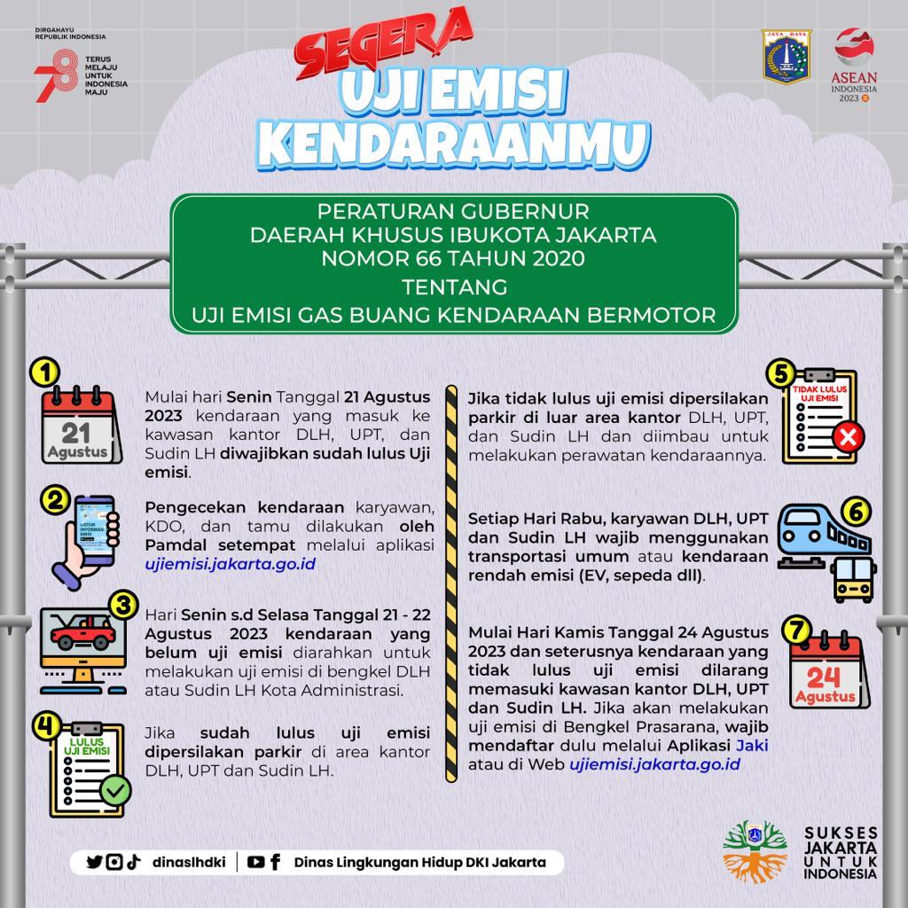 Dinas Lingkungan Hidup DKI Jakarta melarang semua kendaraan bermotor milik pegawai hingga tamu yang belum uji emisi masuki area kantor.