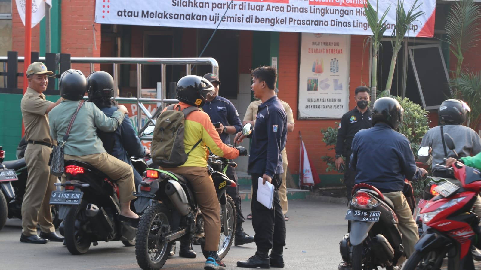Dinas LH DKI Jakarta melarang semua kendaraan bermotor milik pegawai hingga tamu yang belum uji emisi masuki area kantor. (Humas DLH)