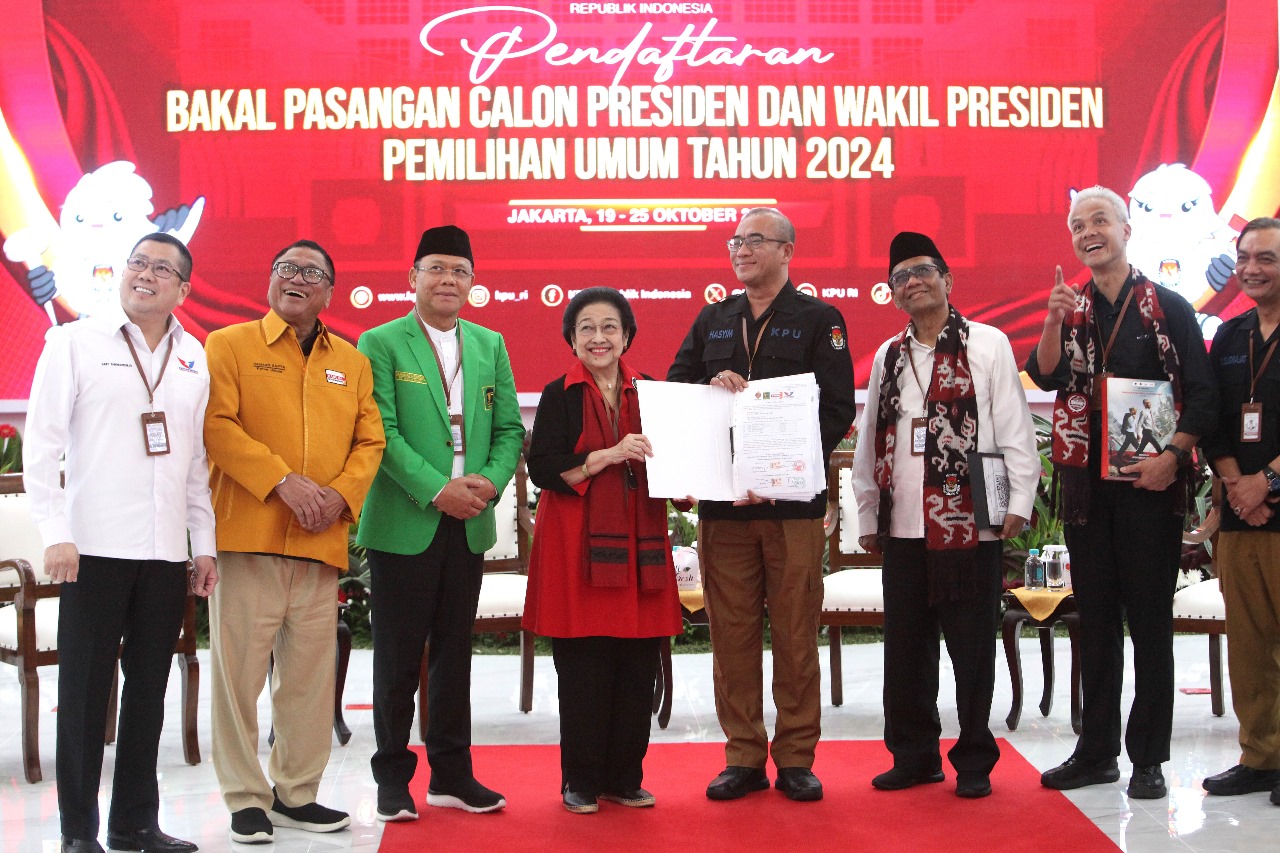 Pasangan Ganjar Pranowo dan Mahfud MD resmi mendaftar sebagai Pasangan Calon Presiden dan Wakil Presiden pada Pemilihan Umum Tahun 2024. (Pantau/Senaru)