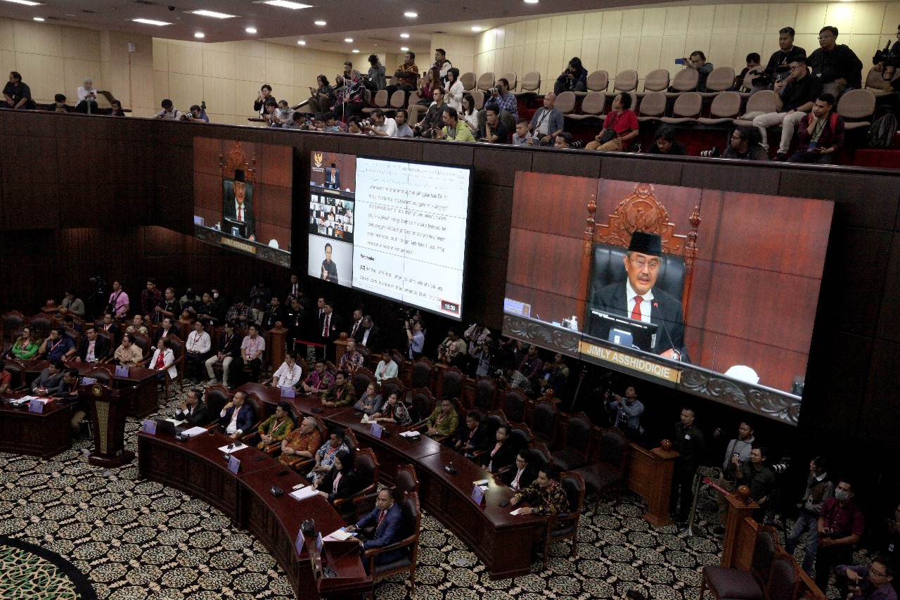 MKMK memutus enam hakim Terlapor telah melanggar kode etik hakim konstitusi karena terbukti tidak dapat menjaga informasi rahasia dalam rapat.(Pantau/Senaru)