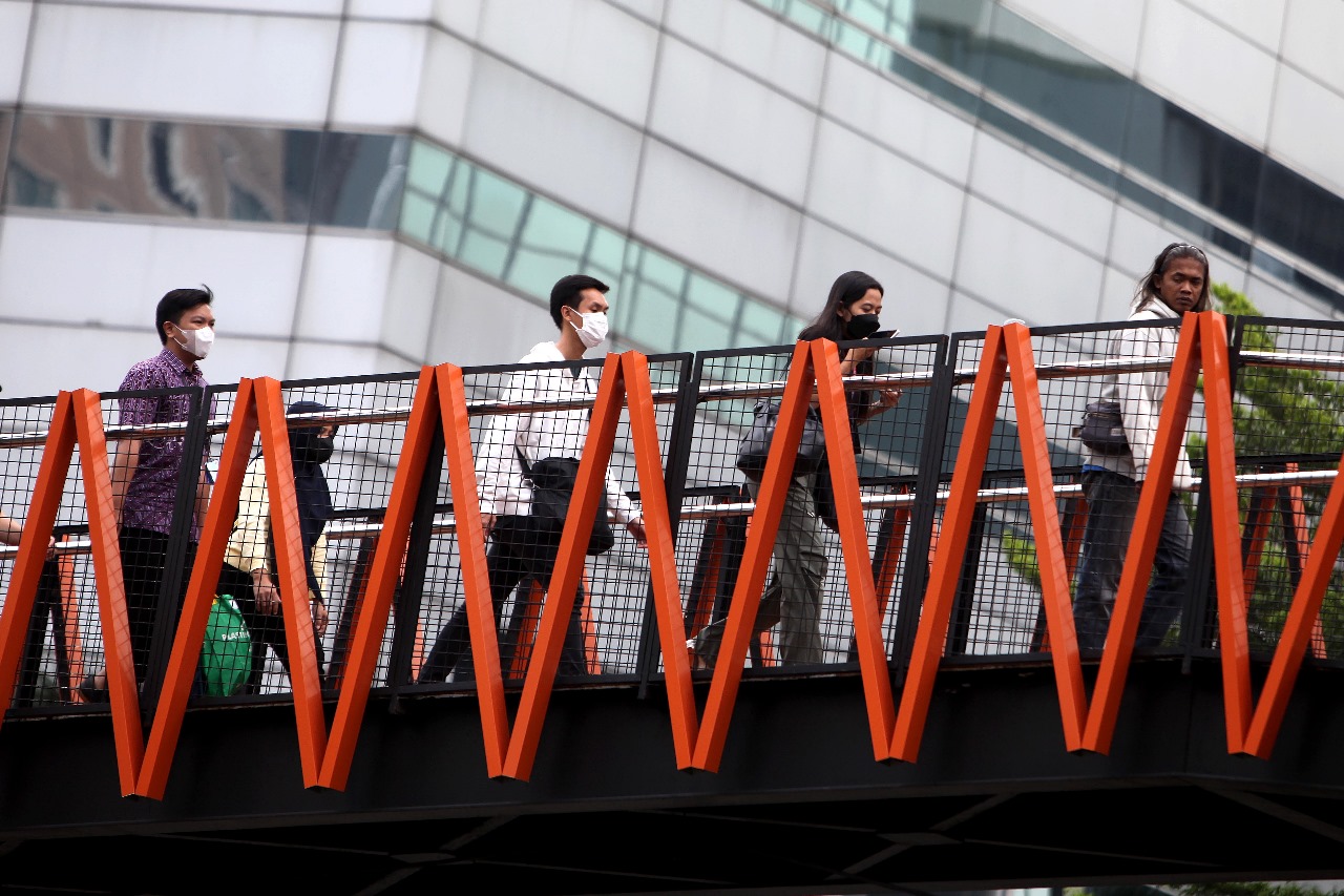 Pantau - Aktivitas pekerja saat berangkat kantor di kawasan Sudirman, Jakarta, Jumat (17/11/2023).