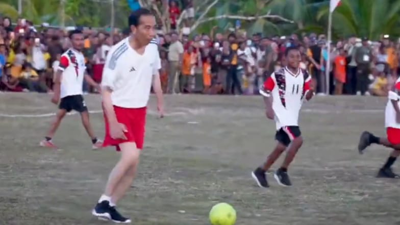 Penampakan Jokowi Main Bola di Papua, Ada Pose Galau