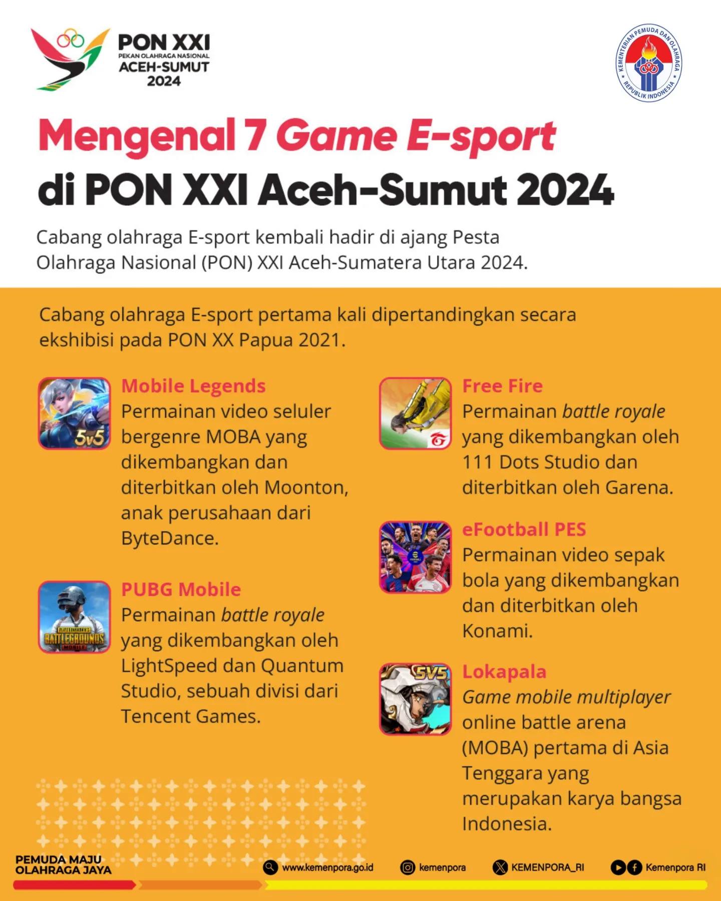 Jika sebelumnya pada gelaran PON XX Papua 2021 hanya ada lima game cabor e-sports, kali ini totalnya ada tujuh game yang akan dipertandingkan termasuk di dalamnya game yang pernah dilombakan dan juga ekshibisi atau tahap pengenalan.