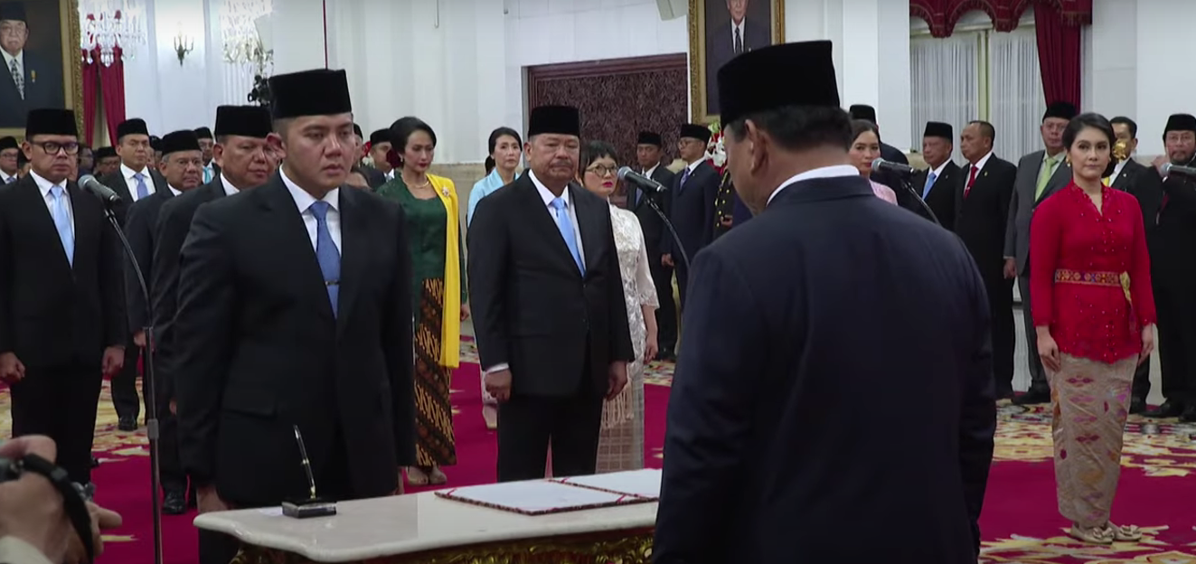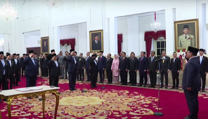 Adapun Presiden Prabowo sendiri yang memimpin langsung pengambilan sumpah jabatan para menteri dan pejabat setingkat menteri untuk periode 2024-2029.