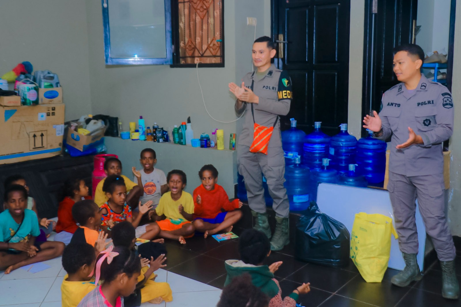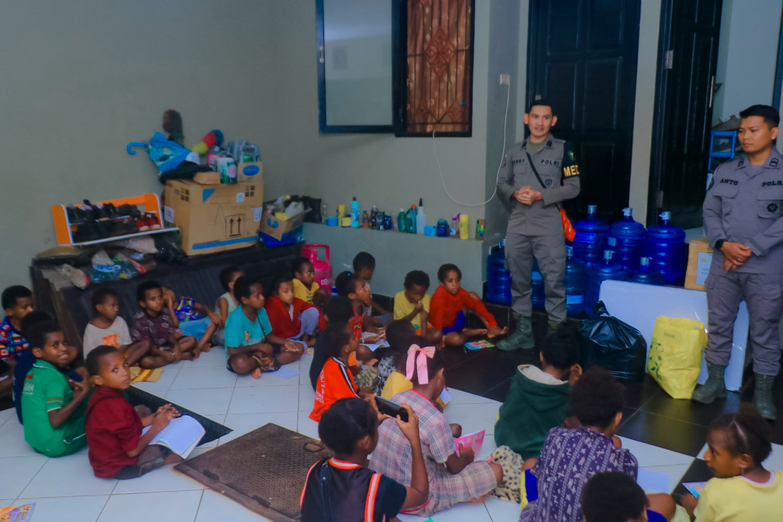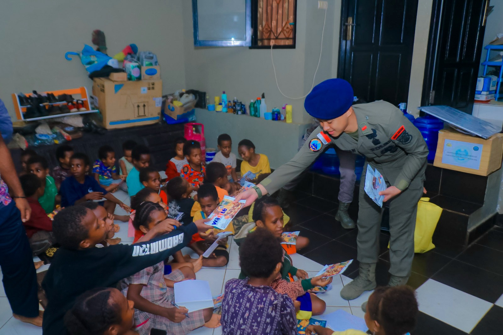 Satgas Damai Cartenz Kunjungi Kelompok Belajar Anak Papua Hebat di Jalan KRI Macan Tutul, Dok V Atas, Jayapura Utara, Kota Jayapura, Selasa (22/10/2024).