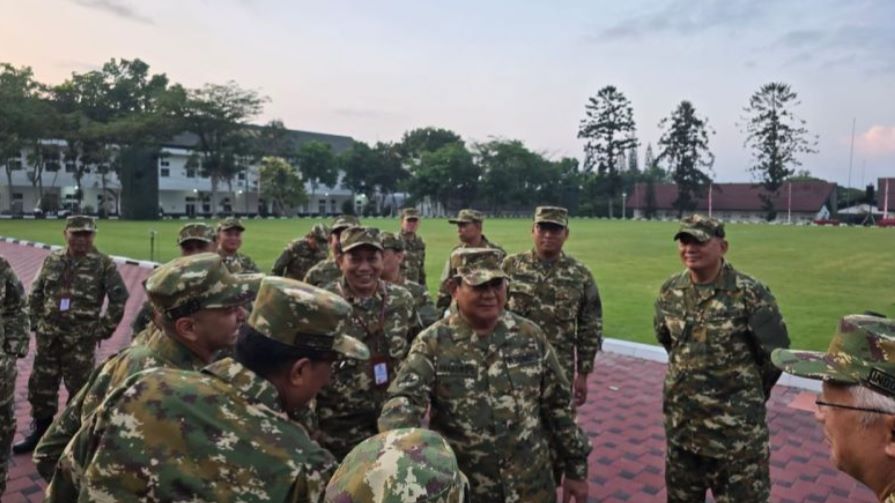 Foto: Para menteri Kabinet Merah Putih kompak berseragam loreng komponen cadangan (komcad) saat beraktivitas pagi di Akmil, Magelang, Jawa Tengah, Jumat (25/10) - Antara