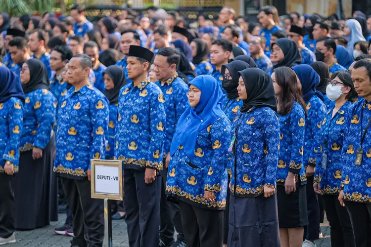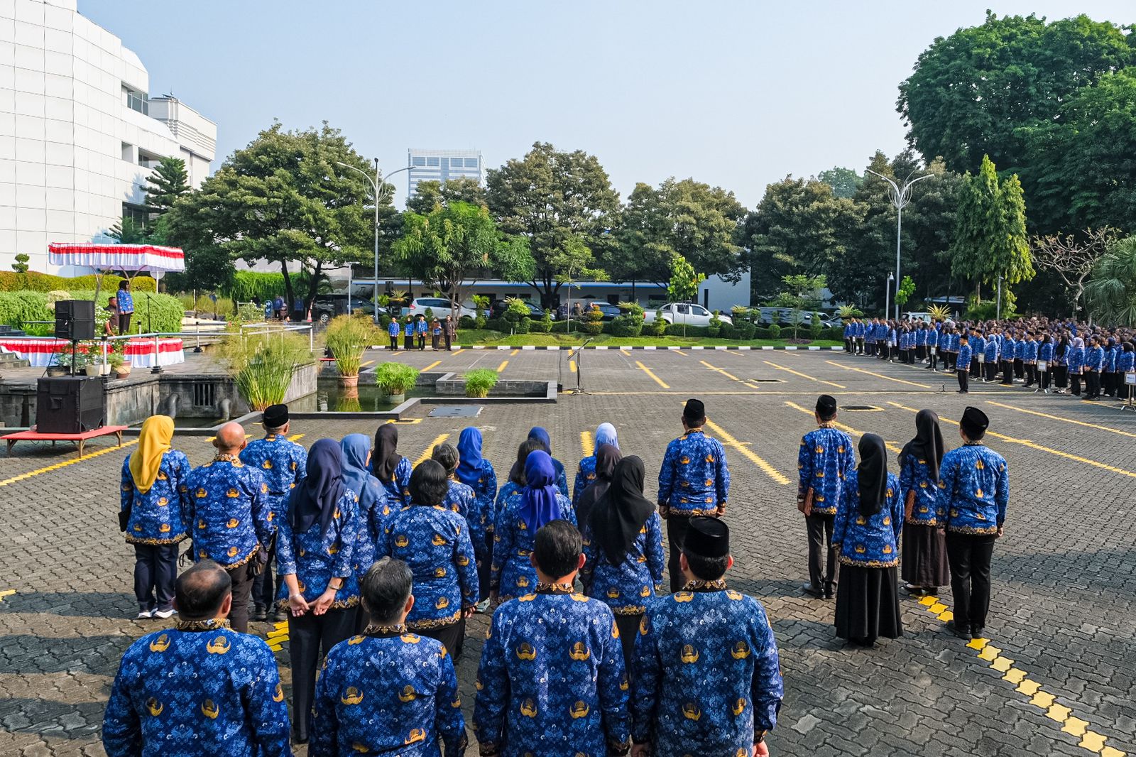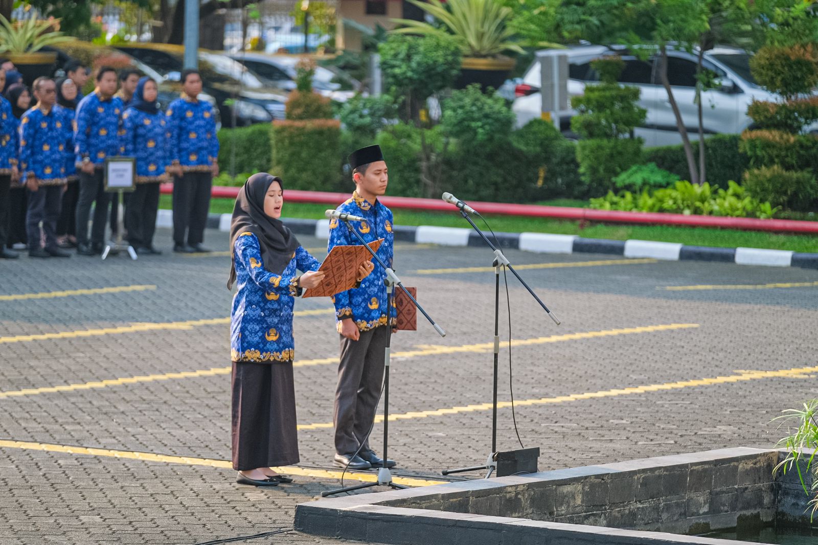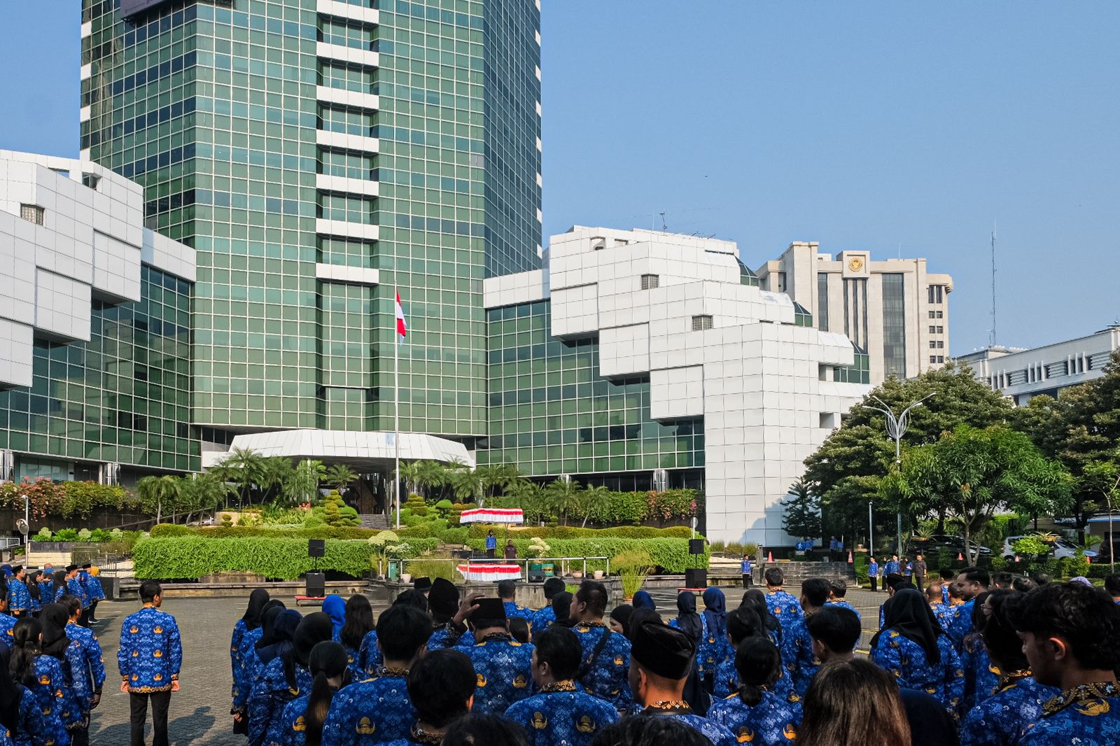 Kemenparekraf/Baparekraf menyelenggarakan upacara peringatan Hari Sumpah Pemuda di halaman Gedung Sapta Pesona, Kantor Kementerian Pariwisata dan Ekonomi Kreatif, Jakarta Pusat, Senin (28/10/2024).
