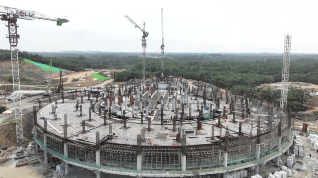 Proses tutup atap atau topping off pembangunan Masijd Negara Ibu Kota Negara Nusantara (IKN) ditargetkan selesai pada Desember 2024.