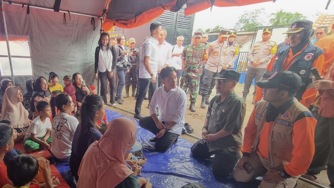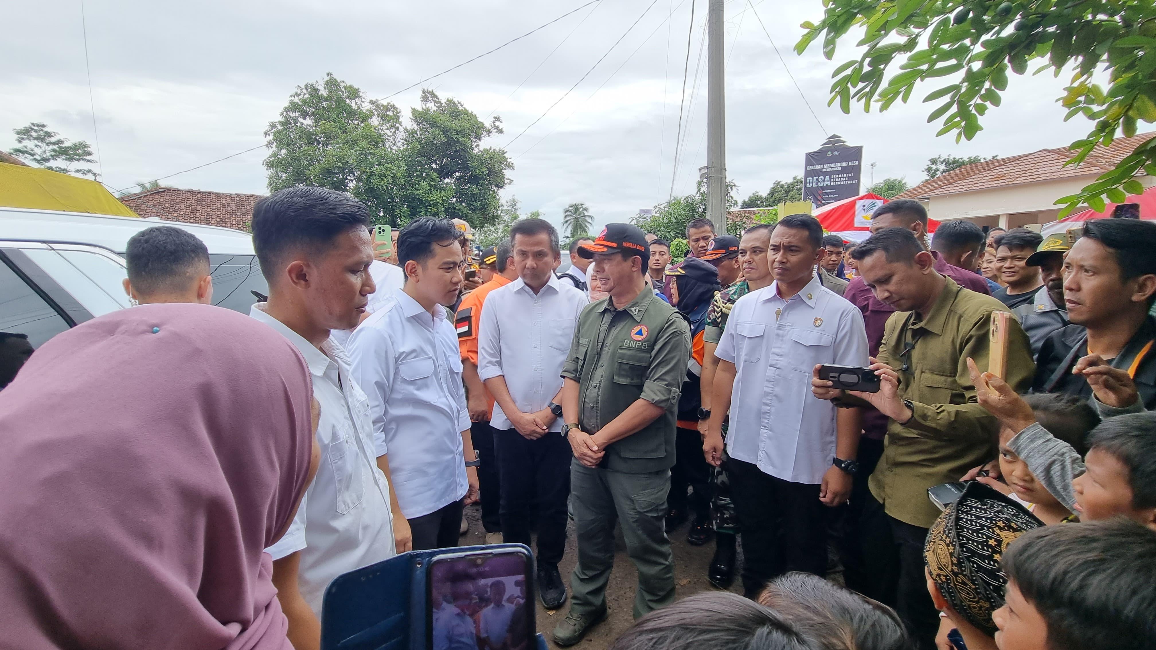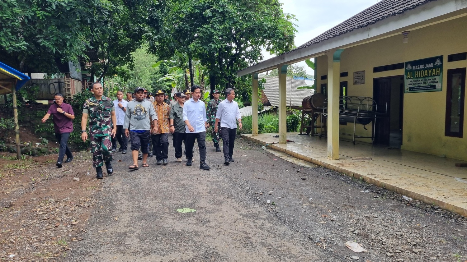 Foto: Wakil Presiden Gibran Rakabuming didampingi Pj. Gubernur Jawa Barat Bey Machmudin dan Kepala BNPB Suharyanto, meninjau salah satu lokasi terdampak di Kampung Cihonje, Kecamatan Cikembar, Sukabumi (6/12).. Dok: X/KemensetnegRI