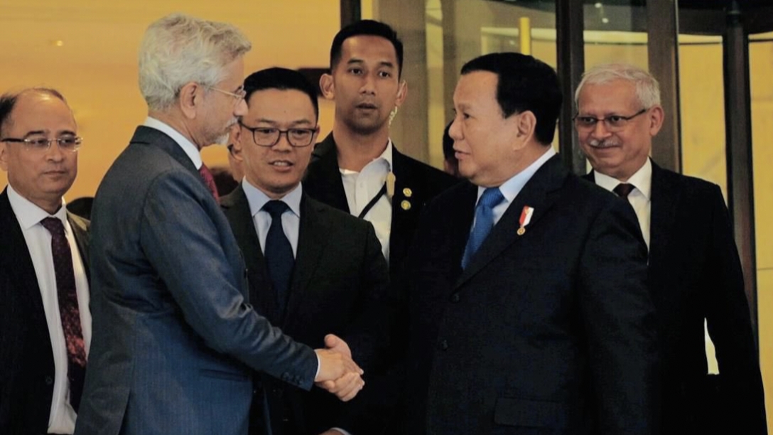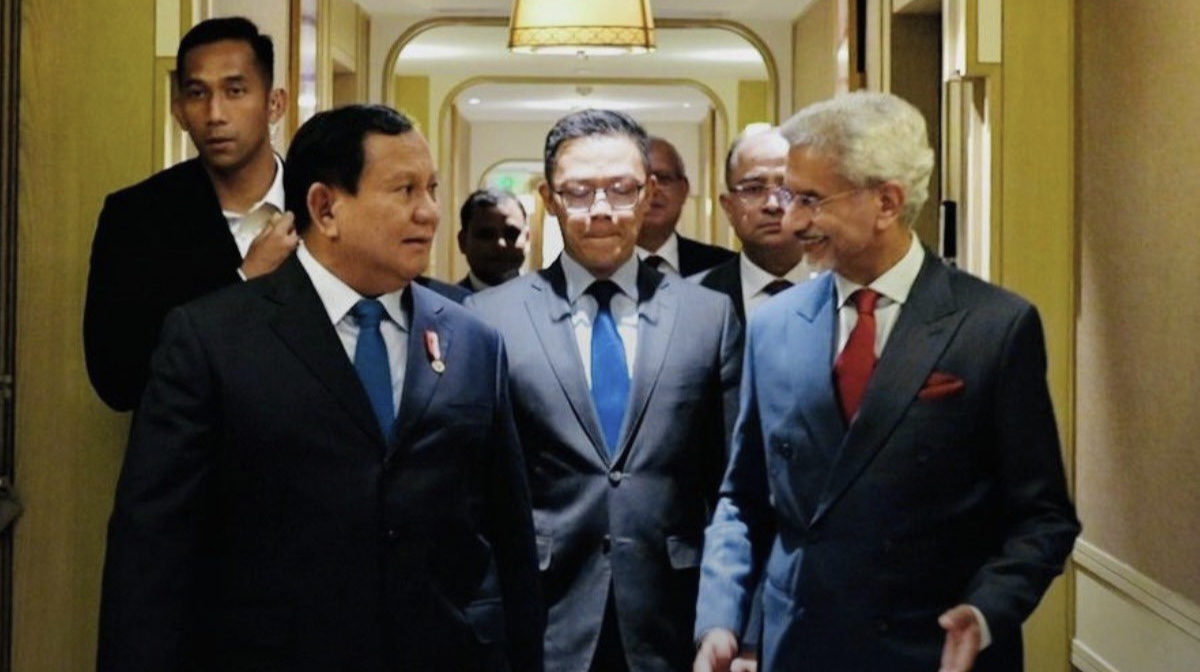 Foto: Presiden Republik Indonesia, Prabowo Subianto, menerima kunjungan kehormatan Menteri Luar Negeri (Menlu) India, S. Jaishankar, di hotel tempatnya bermalam di New Delhi Jumat (24/1). Dok: X/KemensetnegRI