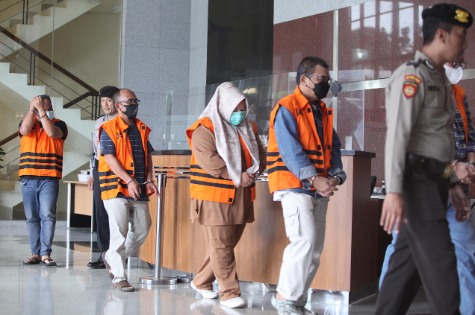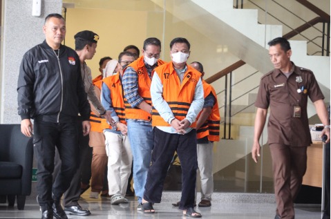 Sejumlah tersangka yang terjaring operasi tangkap tangan terkait dugaan suap proyek Dinas PUPR Ogan Komering Ulu