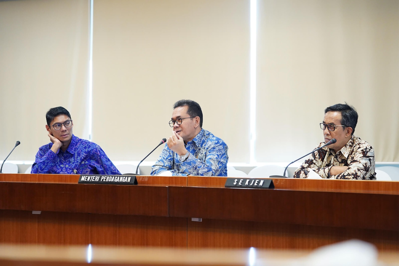 Menteri Perdagangan, Budi Santoso melakukan pertemuan dengan Ketua Ombudsman, Mokhammad Najih di Kantor Kementerian Perdagangan, Jakarta, Jumat (21 Mar).